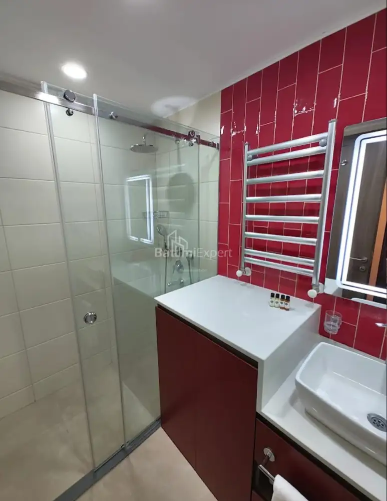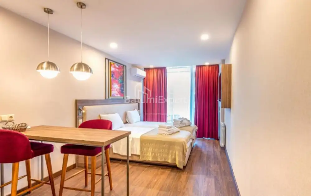 Новая квартира студия с современным ремонтом и новой бытовой техникой.Апартаменты находятся в современном жилом комплексе Rainbow в районе Нового Бульвара в Батуми.Недалеко от комплеса расположен аэропорт, а так же в 100 метрах чистое море.Комплекс построен компанией Elt Building.Есть открытый и закрытый бассейн, фитнес,СПА,охрана,ресотраны и бары.Аренда апартаментами может управлятся международными компаниями.