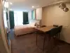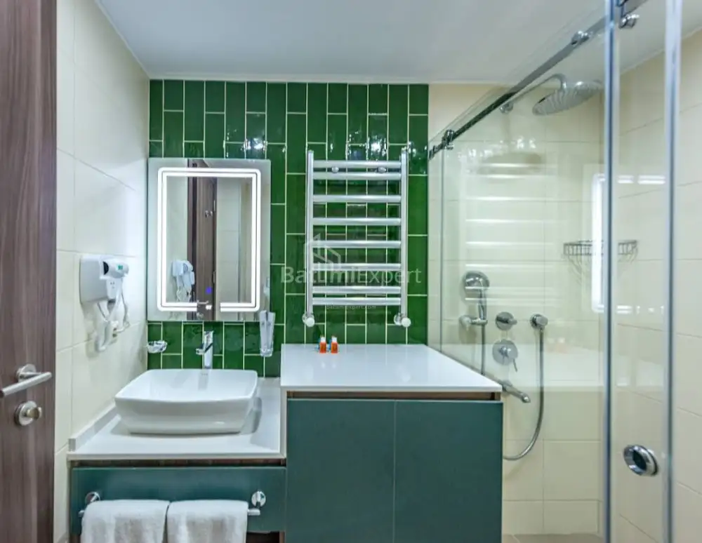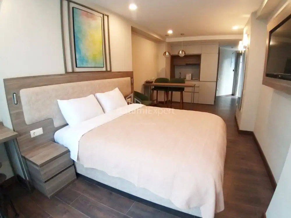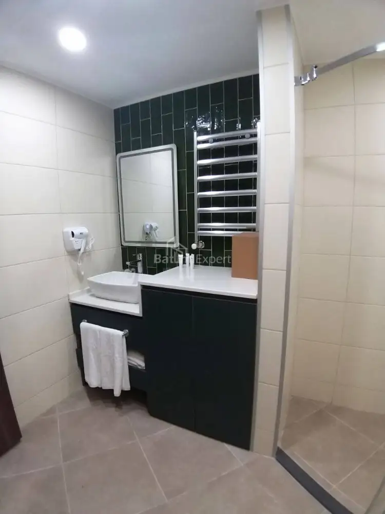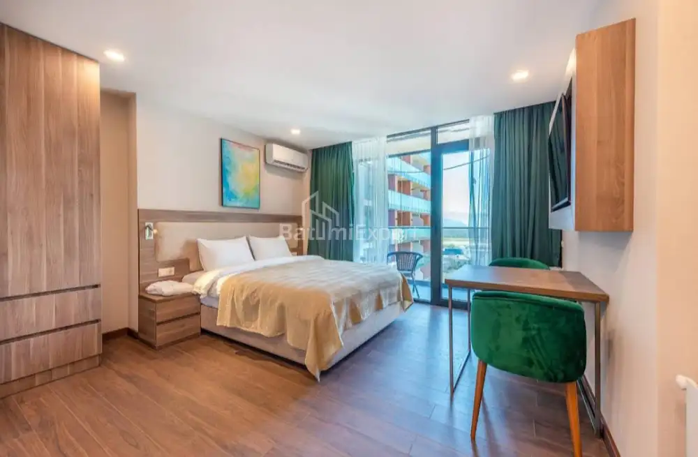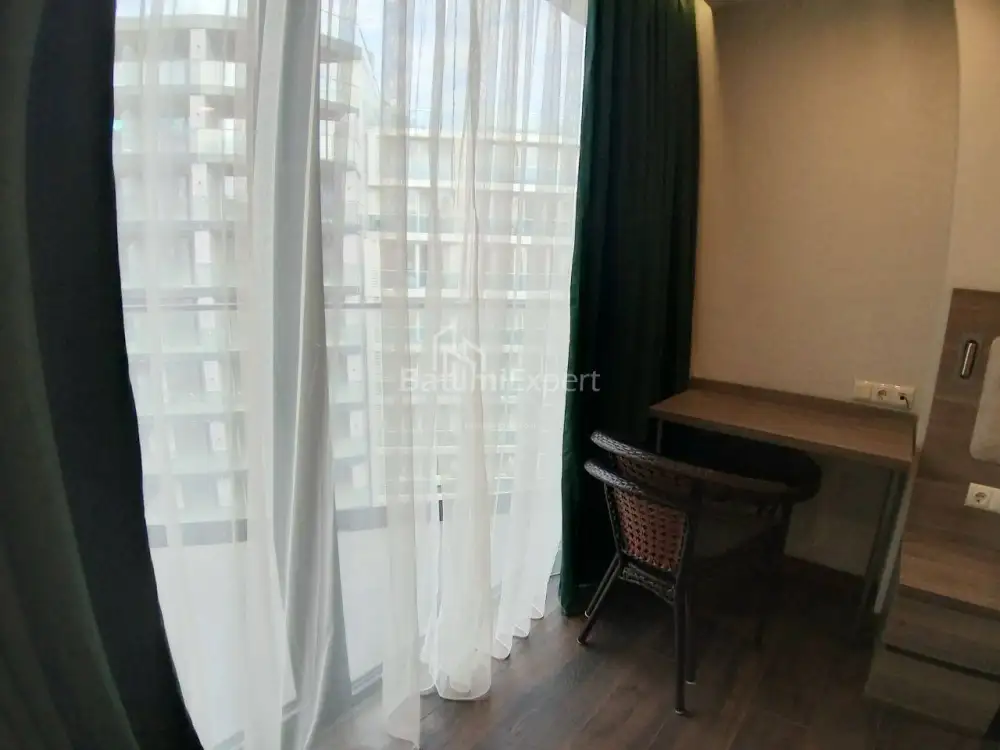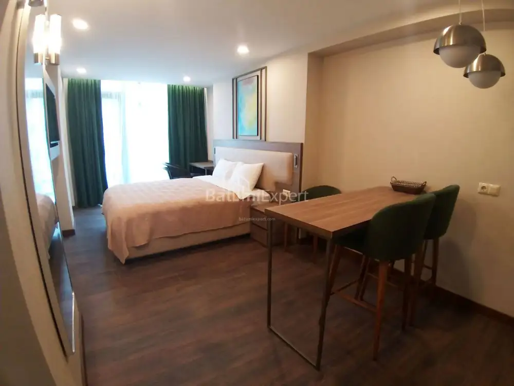 Новая квартира студия с современным ремонтом и новой бытовой техникой.Апартаменты находятся в современном жилом комплексеSunset в районе Нового Бульвара в Батуми.Недалеко от комплеса расположен аэропорт, а так же в 100 метрах чистое море.Комплекс построен компанией Elt Building.Есть открытый и закрытый бассейн, фитнес,СПА,охрана,ресотраны и бары.Аренда апартаментами может управлятся международными компаниями.